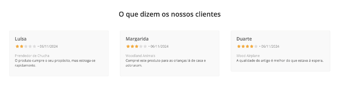 Com esta opção pode adicionar um bloco de avaliações de produtos em diferentes páginas da loja (ex.: homepage, Sobre nós, categorias, etc.).