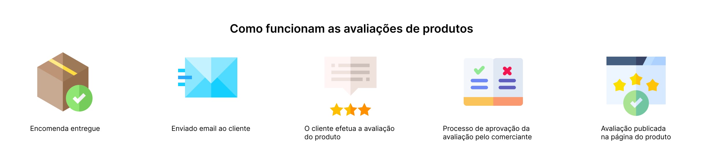 As avaliações positivas na loja transmitem segurança e confiança a outros potenciais clientes durante o processo de compra, podendo assim aumentar a frequência e o valor das suas compras.