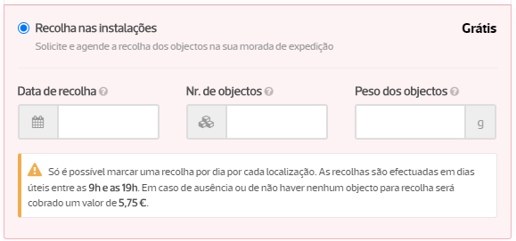 A recolha permite agendar e solicitar a recolha gratuita dos seus produtos em qualquer ponto do país.