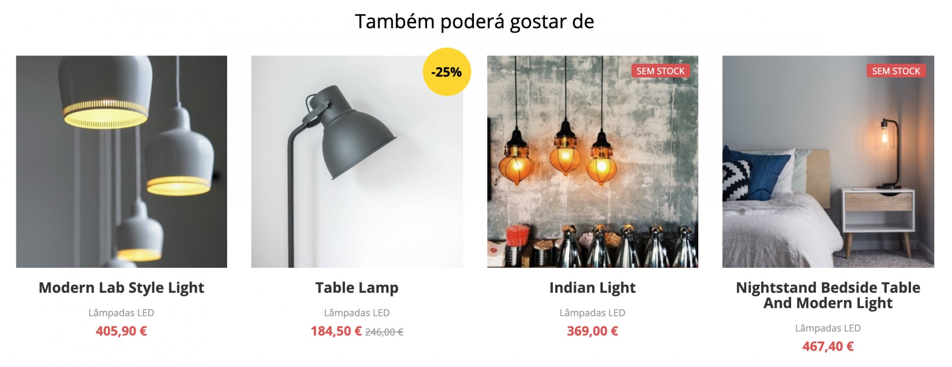 A secção Também poderá gostar de situa-se no detalhe de cada produto da loja, onde surgem até 4 produtos que se enquadram na mesma categoria do produto que está a ser visualizado. Os produtos apresentados são os adicionados mais recentemente à categoria e que tenham associado o atributo Produto é destaque (este atributo pode ser seleccionado no detalhe do produto no menu Produtos, secção Estado do Produto).