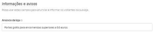 Nestes campos pode colocar informação relevante sobre uma campanha, acerca dos portes de envio ou outra informação que considere importante para os clientes.