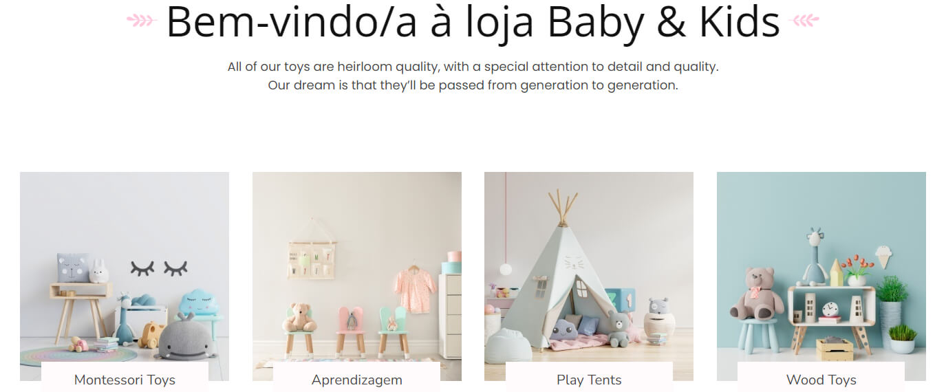 - Secção com categorias principais na homepage da loja online