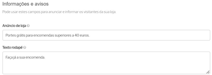 Pode configurar o anúncio de loja no menu Configurações / Website, na secção Informações e avisos, no campo Anúncio de loja (máximo 255 caracteres).