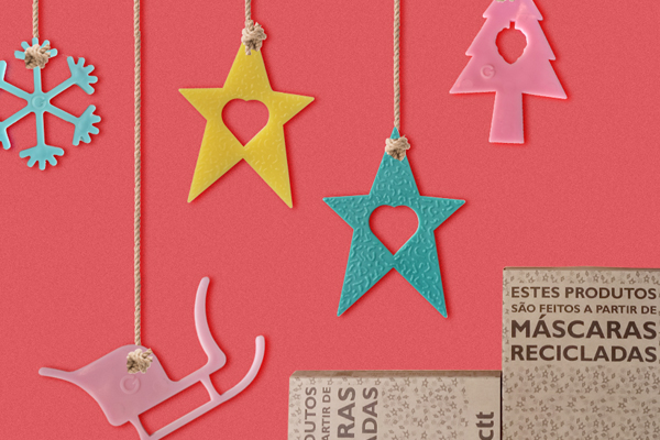 The new products that are created as of used disposable masks are transformed into small Christmas decorations such as sleds, stars, trees, and snowflakes to decorate your Christmas tree.