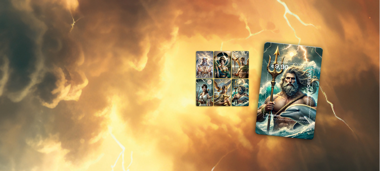 The Portuguese stamp is dedicated to Poseidon, God of the Seas in Greek Mythology, reinforcing Portugal’s Atlantic connection and its spirit of exploration. Innovation and tradition united in a single stamp.